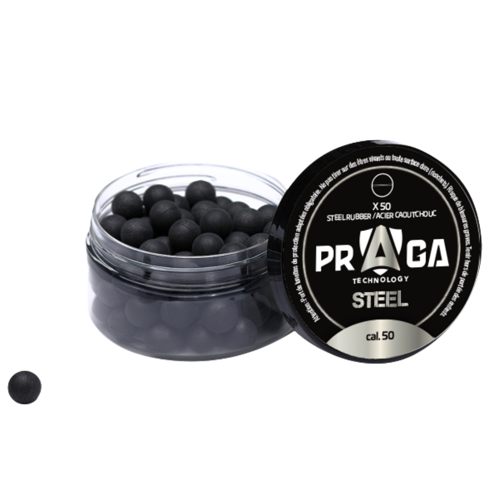 Billes en caoutchouc / Acier 70 à 80% plus lourde que la bille standard (de la même marque) pour une utilisation dans toutes les armes a air de calibre 50 ou lance pierre.