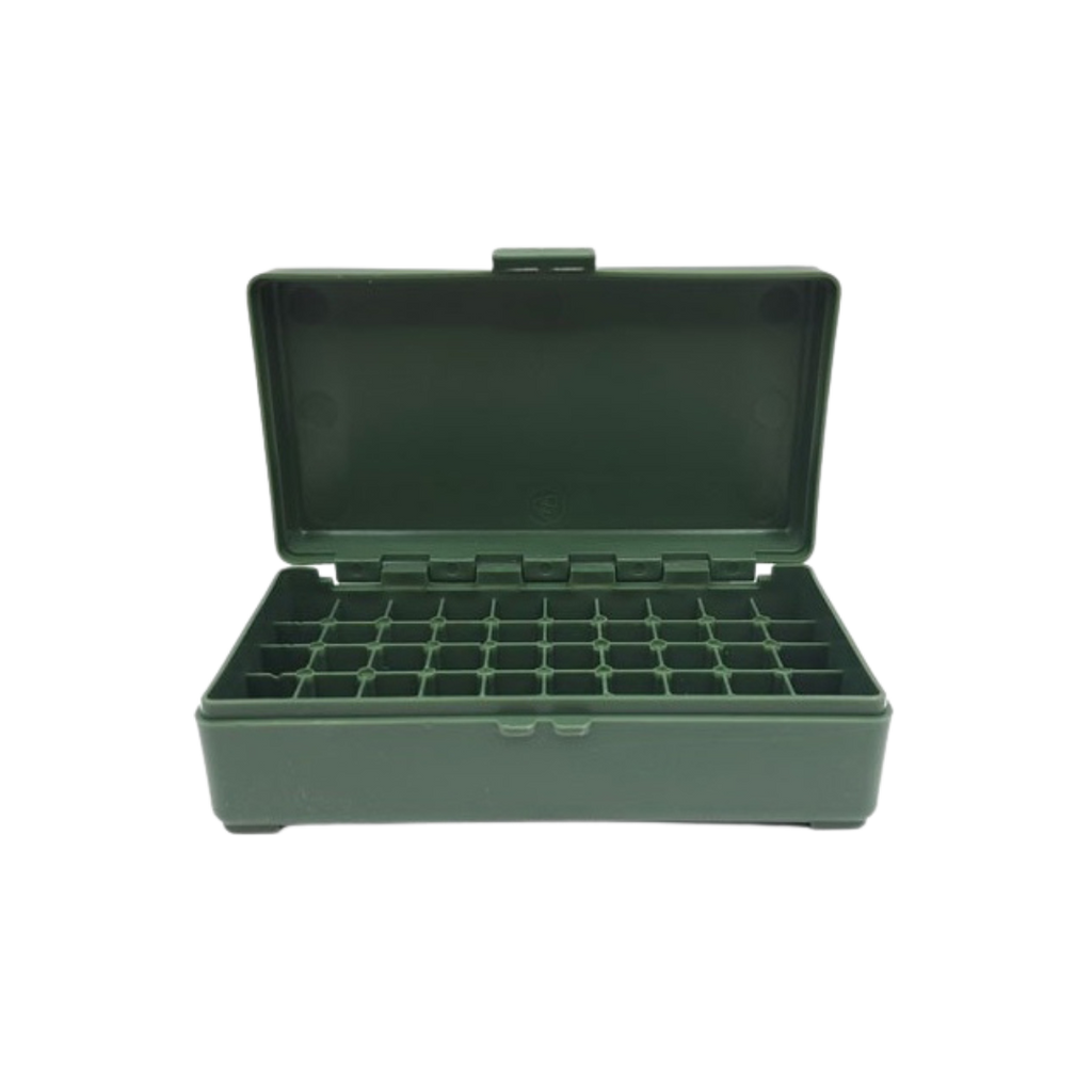 Cette boîte de rangement en plastique rigide peut accueillir jusqu'à 50 munitions de calibre 357. Elle sécurise le transport comme le stockage des munitions, tout en facilitant leur organisation pendant le tir.Couvercle de couleur unie.