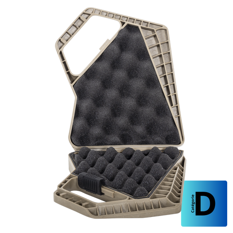 Enfin, pour parfaire cet ensemble "survivaliste", un étui triangulaire résistant à l'eau, dont l'intérieur est recouvert d'une mousse alvéolée, permettra le rangement d'un kit de survie, d'un couteau, de plombs ou encore d'autres outils.