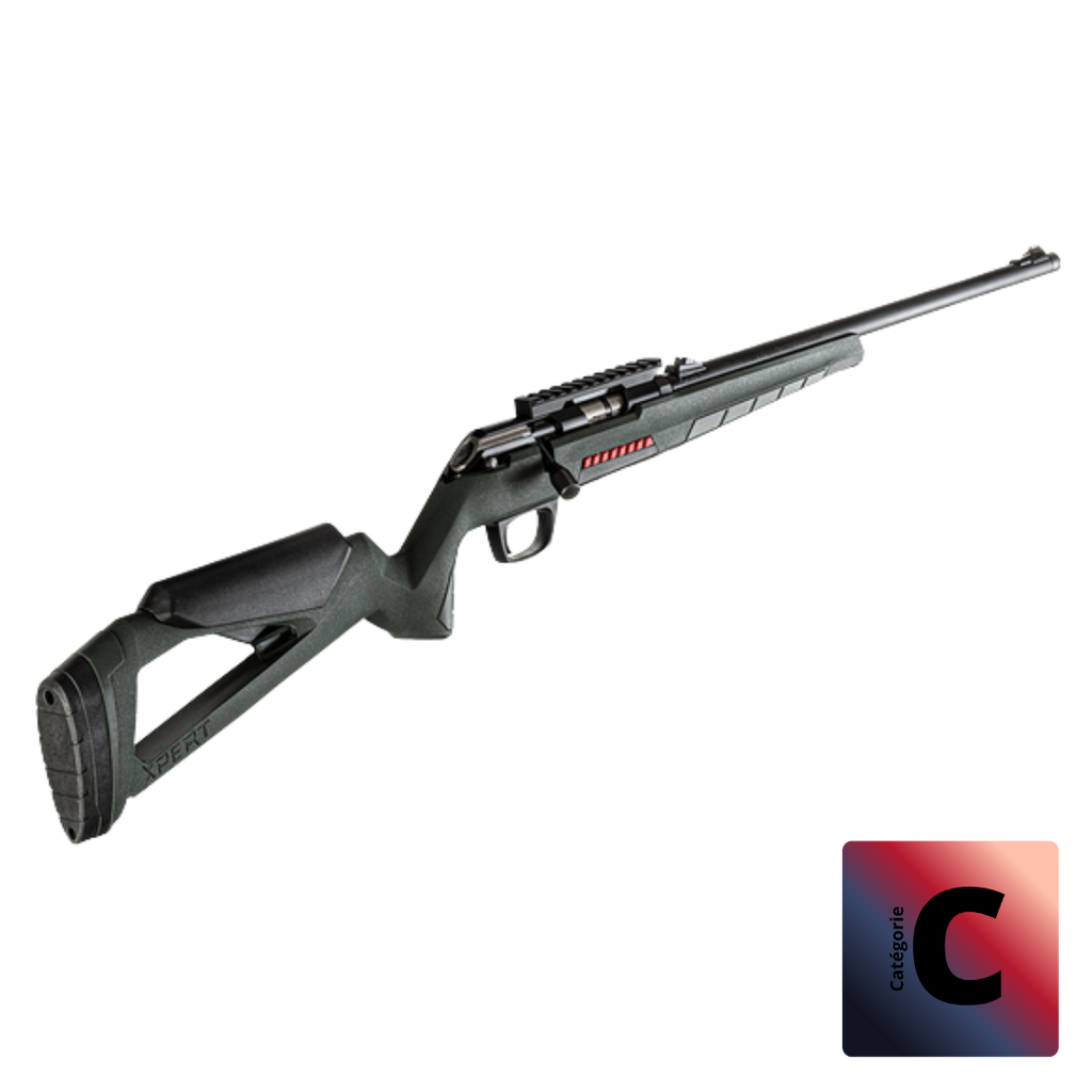 La carabine Winchester Xpert Stealth est conçue pour offrir précision et fiabilité aux amateurs de tir a percussion annulaire. Son canon lourd martelé a froid garantit une précision constante et une excellente stabilité lors des séances prolongées. La crosse synthétique noire assure une prise en main sécurisée et résiste aux chocs ainsi qu'aux conditions difficiles. Le rail de montage intègre facilite l installation d une lunette ou d un point rouge. Le chargeur amovible permet une alimentation simple et rapide. La détente réglable offre un départ net et adaptable aux préférences du tireur. Cette carabine combine robustesse, performance et discrétion dans un design moderne.