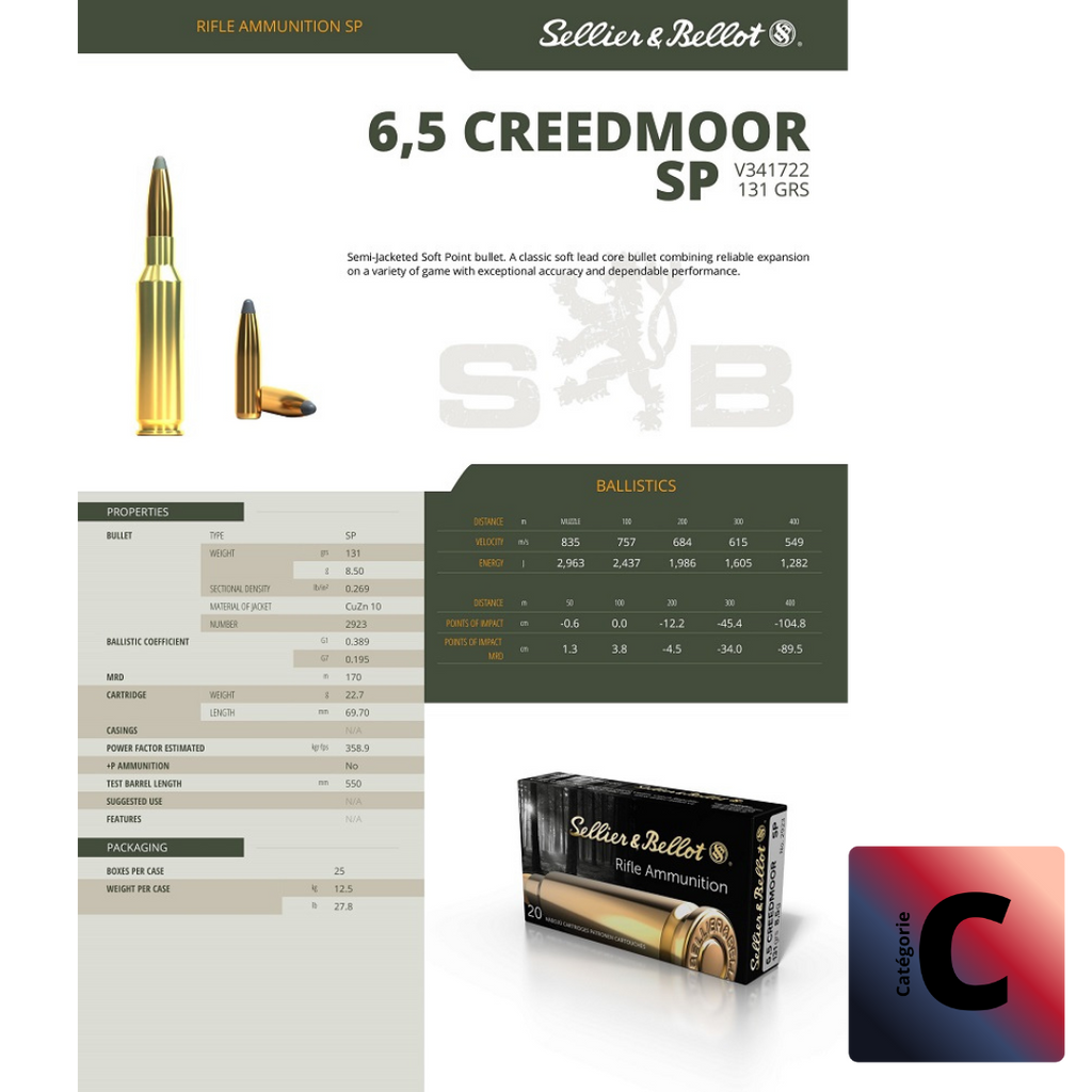 Cartouches Sellier & Bellot Semi-Jacketed Soft Point Bullet. Une munition classique plomb combinant une expansion fiable et un pouvoir d'arrêt important.