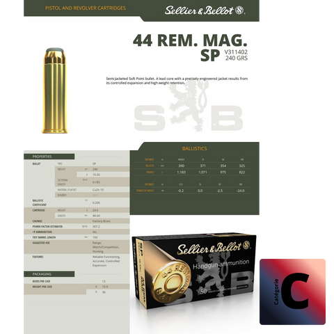 Cartouches Sellier & Bellot Semi-Jacketed Soft Point Bullet. Une munition classique plomb combinant une expansion fiable et un pouvoir d'arrêt important.