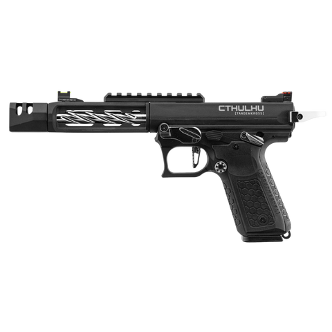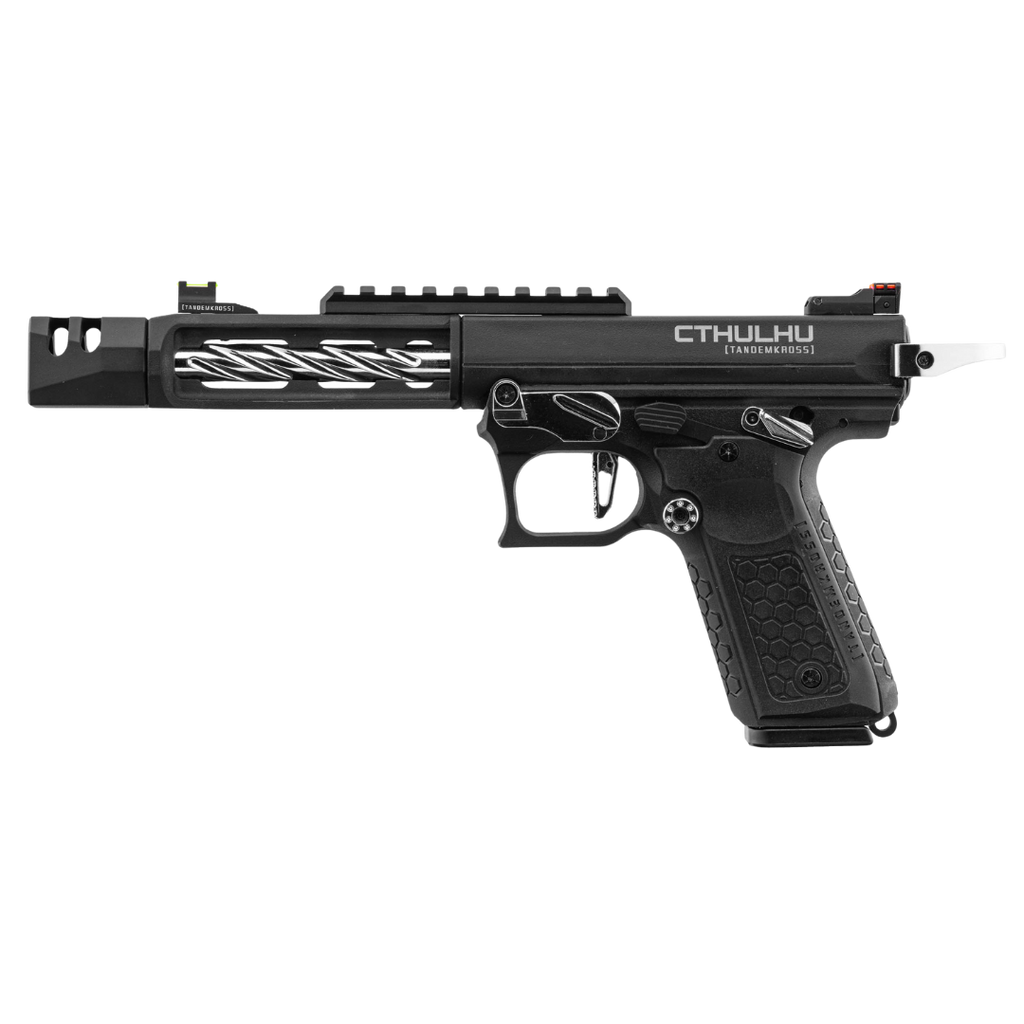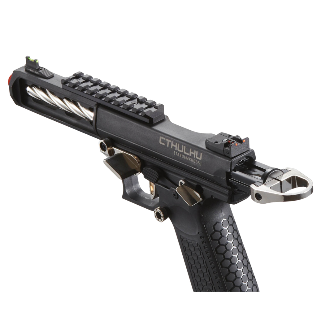 Découvrez le nouveau pistolet à gaz Tandemkross CTHULHU en noir/rouge. Fabriqué en polymère renforcé, ce GBB semi/full auto bénéficie d'un design entièrement sous licence. Cette réplique est doté d'un compensateur carré innovant "Game Changer Pro", d'un repose-pouce CNC, et d'une détente "squelette". De plus le Tandemkross Hivegrip assure une prise en main solide. Avec un anneau de chargement "Halo" et des viseurs à fibre optique "Eagle Eye", ce pistolet offre une précision inégalée. Le chargeur de 24 coups et le hop-up réglable renforce sa polyvalence.