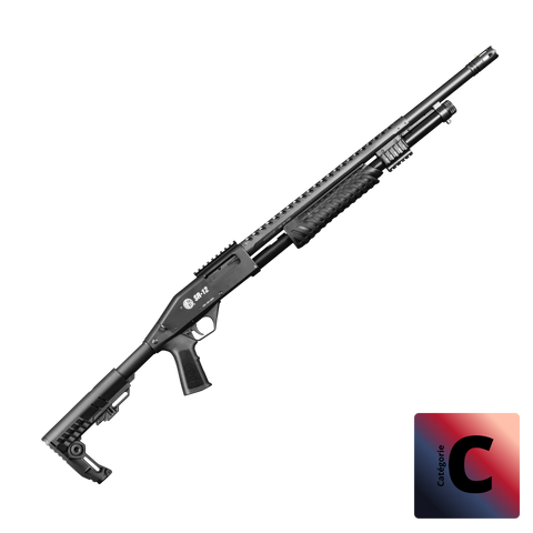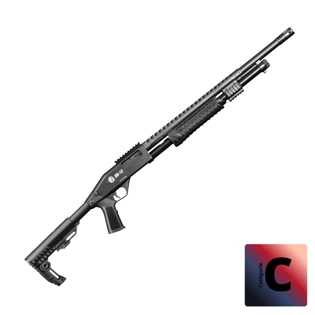 Le SR12 est un fusil à réarmement manuel avec une version TACTICAL. Il est équipé d'une crosse tactique, d'un canon rayé de 61 cm avec son déflecteur de chaleur utile lors de tir soutenu, d'une embase sur le boitier pour la fixation d'une lunette ou d'un point rouge et d'un triple rails de 22 mm à l'avant pour l'adaptation d'accessoires (lampes, lasers, etc...)