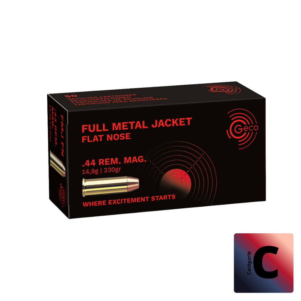 GECO .44 REM MAG 14.9g 230gr Full Métal Jacket FMJ Flat Nose boite de 50