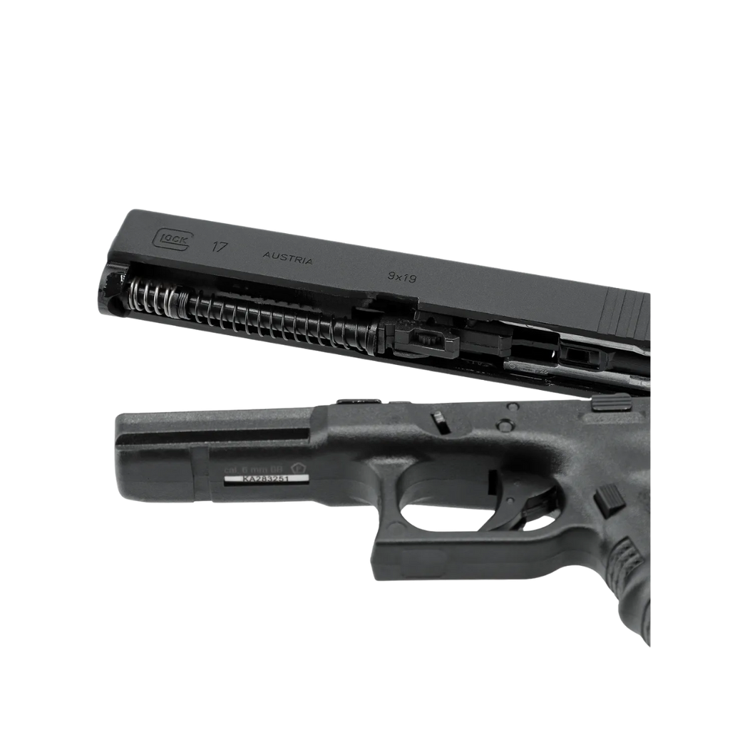 Le Glock 17 est la référence historique des pistolets Glock, déclinaison fidèle du modèle d'origine adaptée à l'airsoft. Cette réplique sous licence est propulsée au gaz, équipée d'une culasse en métal lourde qui apporte un poids réel d'environ 650 g et restitue l'effet blowback. L'arme se démonte intégralement comme sur l'original, ce qui facilite le nettoyage et l'inspection. Le hop-up réglable garantit une trajectoire stable et une précision optimale. Le réalisme et la qualité d'assemblage font de cette réplique un choix prisé par les connaisseurs et les fans de Glock.