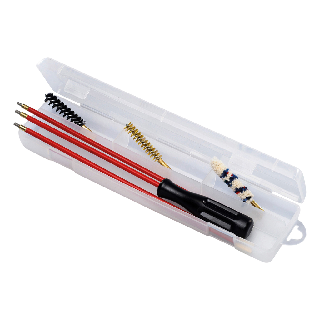 Kit de nettoyage avec baguette acier gainée PVC de 4 mm de diamètre démontable en 3 brins. Livré avec une brosse laine, une brosse crin et une brosse laiton. Livré en boîte plastique translucide.