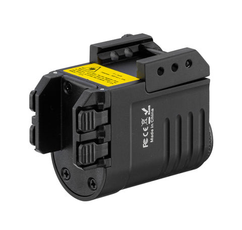 - L'interrupteur du laser permet d'allumer/éteindre le laser. Une pression simple active/désactive le mode régulier, tandis qu'une pression de deux secondes active le mode stroboscopique. En mode stroboscopique, une pression prolongée de deux secondes désactive complètement le mode stroboscopique, assurant une utilisation précise et personnalisée.