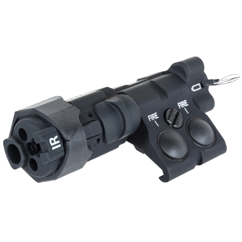 Ce modèle est doté de 2 boutons ergonomiques permettant une utilisation même avec des gants épais. Il intègre un support pour rails RIS/Picatinny (montage possible à gauche comme à droite de la réplique). Une boite de transport est fournie.