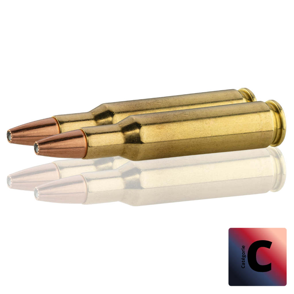 Grâce à sa pointe creuse et son nez aplati, elle assure un bon fonctionnement en carabines semi-automatiques. Sa vitesse initiale de 940 m/s garantit une trajectoire très tendue et une précision optimale jusqu’à 200 mètres :