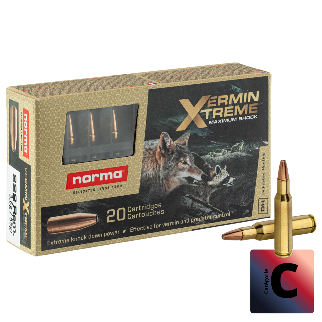 Conçue pour neutraliser les nuisibles avec efficacité, la cartouche Norma VerminXtreme en .222 Remington 55 gr associe une ogive Hollow Point à forte expansion et une vitesse très élevée, pour des tirs décisifs et précis.