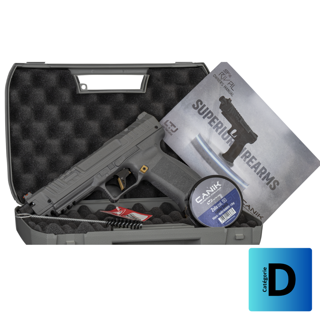 Le célèbre pistolet CANIK SFX RIVAL arrive ici dans sa version non léthale, avec sa poignée en polymere et sa culasse en métal pour plus de réalisme.