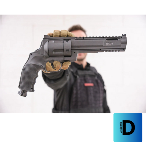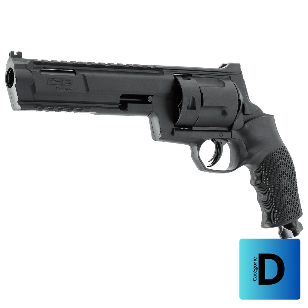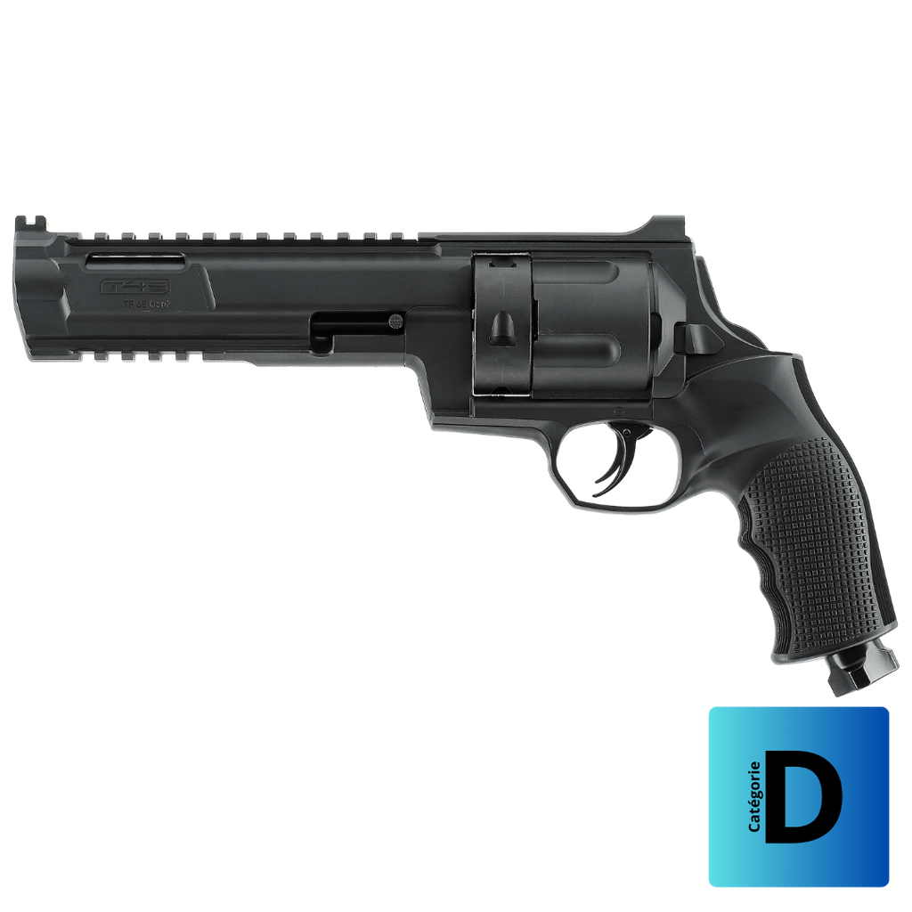 Le TR 68 Gen2 en calibre .68 est l'évolution du revolver T4E, avec une énergie de 16 J. La 2e génération intègre le système Quick-Piercing 2.0 sans outil avec purge: un léger coup sous la poignée perce la cartouche CO2 12 g au moment voulu et garantit la pleine puissance même après un long stockage. La visée optimisée avec guidon fibre et le canon de 170 mm allongent la ligne de mire pour plus de précision.