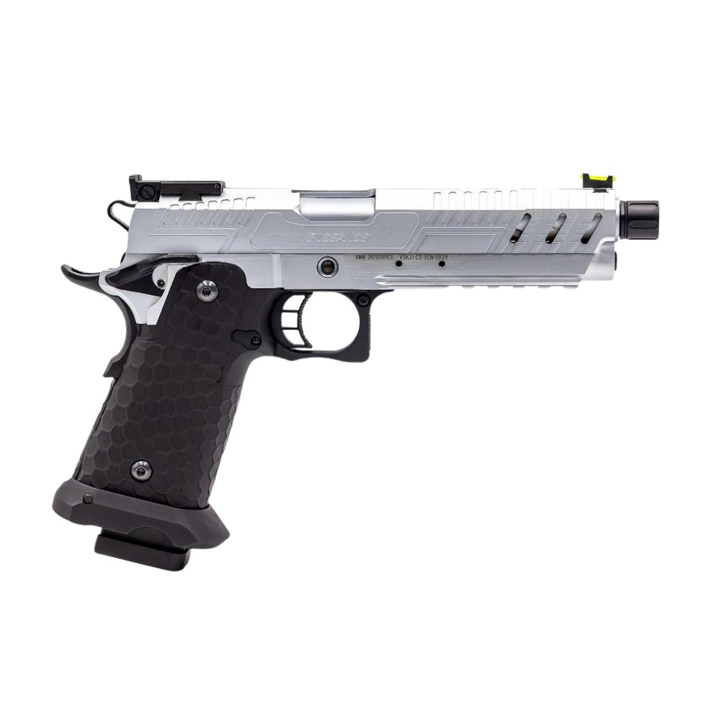 Comparé aux 5.1 Hi-Capas standard de VORKS, la série CS VENGEANCE dispose d'un nouveau viseur arrière réglable, d'un magwell et possède un montage BDS (red-dot en option) flottant.
